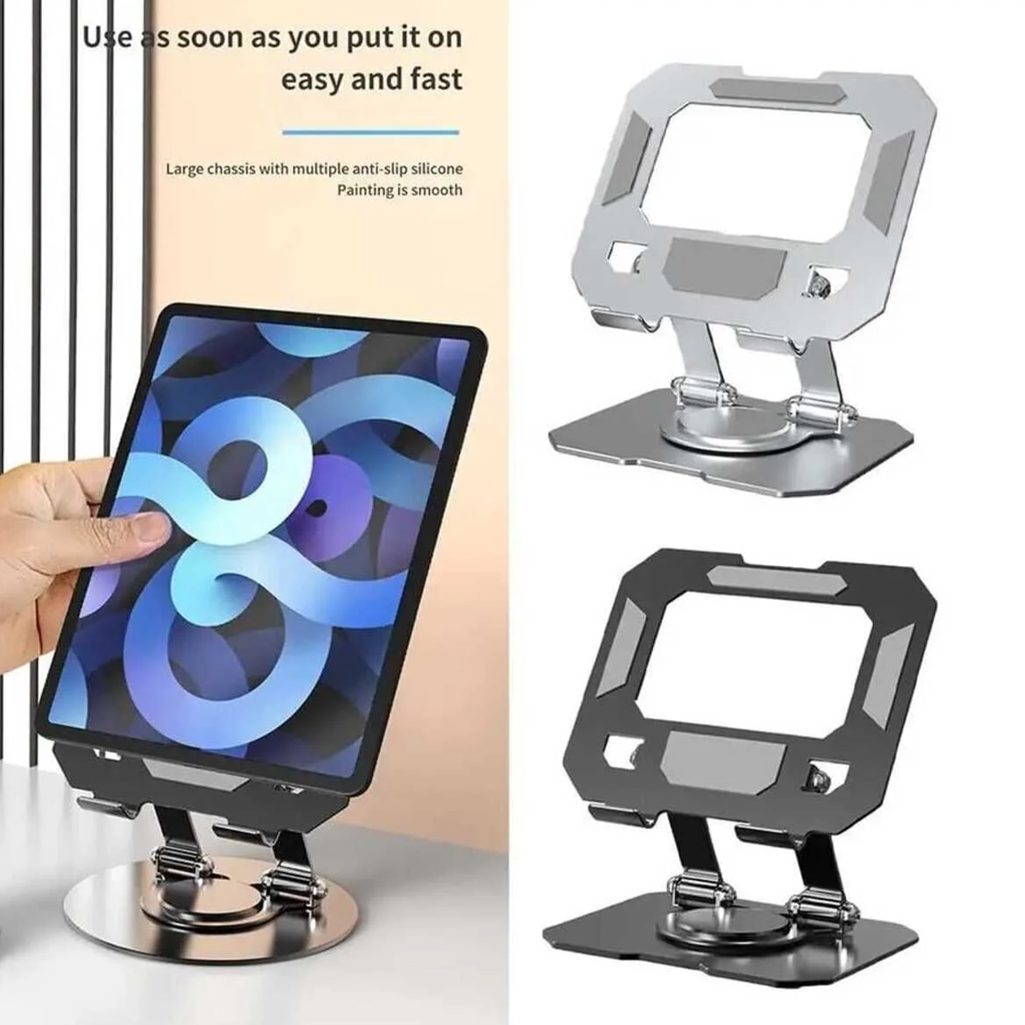 Katlanabilir tablet ve dizüstü standı, ergonomik tasarımı sayesinde cihazınızı en uygun görüş açısına getirerek konforlu kullanım sağlar. Tamamen metal gövdesi uzun ömürlü dayanıklılık sunarken, çoklu kaymaz silikon pedler cihazınızın güvenle sabit durmasını sağlar.